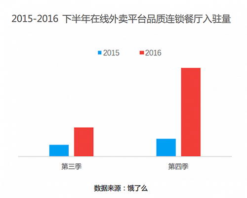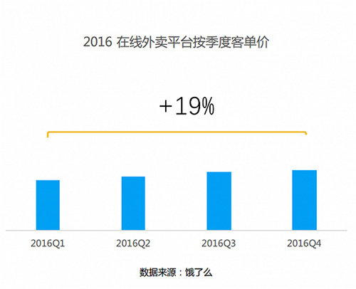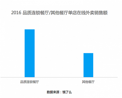 2016年,在線外賣平臺餓了么季度客單價(jià)提升19%,與此同時品質(zhì)連鎖餐廳入駐外賣平臺數(shù)量大幅提升,同時營業(yè)額相比普通餐廳也較高。