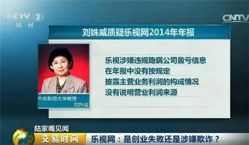 緊接著2015年6月底,曾經(jīng)揭露藍(lán)田股份造假的中央財(cái)經(jīng)大學(xué)教授劉姝威,也質(zhì)疑樂視涉嫌違規(guī)隱瞞公司盈虧信息,在年報(bào)中沒有按規(guī)定披露主營(yíng)業(yè)務(wù)利潤(rùn)的構(gòu)成情況,沒有說明營(yíng)業(yè)利潤(rùn)來源。