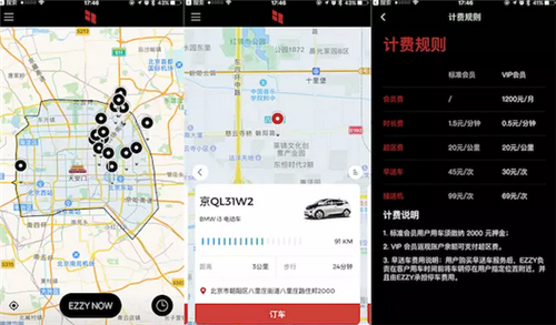 但是從用戶角度出發(fā),也有一些體驗上的問題,比如有時候按照地圖的指示根本找不到車,因為這輛車有可能停到了地下車庫;有時候不注意會收到幾百塊的超區(qū)費訂單,因為無意之間把車開出了 EZZY 在北京以四環(huán)路為界的服務(wù)區(qū)域,等等。