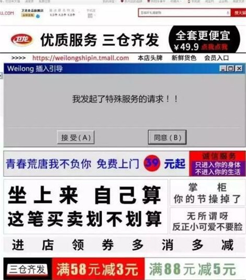 此外,“污”文化也倍它玩得爐火純青。其天貓旗艦店的主頁在某一天以AV網(wǎng)站的畫風(fēng)面世,簡直污得不要不要的,引得一眾網(wǎng)友以為自己點錯了鏈接。