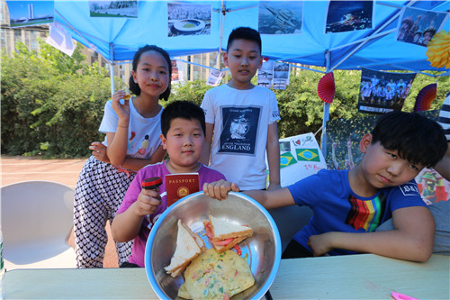 不要以為拿著護(hù)照,在校園里隨意的蹭吃蹭喝蹭表演看,這個(gè)國(guó)際周就算圓滿(mǎn)了。一帶一路“自助游”的路線是這樣的:首先要在教室里,認(rèn)真學(xué)習(xí)和了解“一帶一路”沿線國(guó)家的靜態(tài)文化展示;接著去操場(chǎng)和報(bào)告廳體驗(yàn)國(guó)家的動(dòng)態(tài)文化展示——美食、舞蹈、音樂(lè)等民俗文化;最后去簽證官處“面簽”,想要拿到簽證絕非易事,還得回答“簽證官”提問(wèn)的問(wèn)題,如“看我們的國(guó)旗,我們是哪個(gè)國(guó)家的?”“我們國(guó)家什么最著名呀?”等問(wèn)題,而問(wèn)題的答案,都在孩子們精心準(zhǔn)備的文化展板里。如果你被簽證官“拒簽”,那么請(qǐng)你再去學(xué)習(xí)深造一下。你瞧,孩子們可不覺(jué)得這是一場(chǎng)游戲,而是把這看出是一堂課程、一次學(xué)習(xí),一次檢驗(yàn)自己知識(shí)儲(chǔ)備的考試。當(dāng)孩子們集齊所有國(guó)家的簽證,那么學(xué)校會(huì)有神秘的兒童節(jié)禮物獎(jiǎng)勵(lì)你。