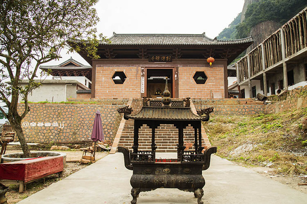 福音峽。這里懸崖相依,兩山并立,相距不過數(shù)尺,遠觀之則只見藍天一線自峽中露出,故名“一線天”。右邊一石,形如草鞋。據(jù)說:人立在峽中,面向南大喊,若有四聲回音,則此人將有福緣,故此峽名“福音峽”。