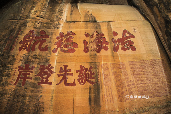 丹霞山的真味也是禪味。寂寂群山幽幽叢林,歷來是釋家修行隱逸之地。別傳寺寺前石上劈面就見“紅塵不到”四字佛偈,仿佛禪風(fēng)拂面,梵聲過耳,把萬丈紅塵都拋到身后去。