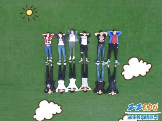 拍攝現(xiàn)場(chǎng),只見在17屆航空班班長(zhǎng)孫昱的指揮下,全體同學(xué)按照先前規(guī)劃好的分組,在地面組成各種樣式的圖案。拍攝現(xiàn)場(chǎng)學(xué)生們熱情洋溢,喜笑顏開。在歡樂(lè)的氣氛中,為在鄭州市經(jīng)濟(jì)貿(mào)易學(xué)校度過(guò)的無(wú)悔的青春,留下了濃墨重彩的一份記憶。