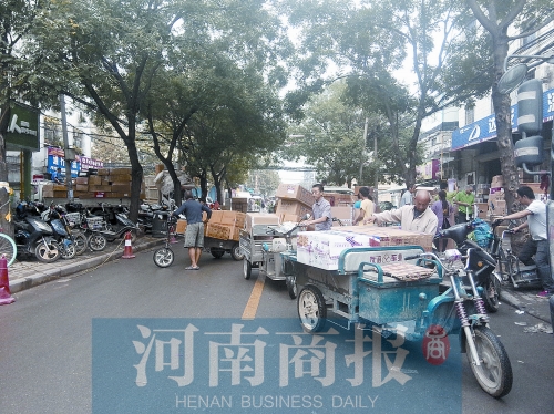 自9月18日《市場(chǎng)外遷收官之年 京廣路商圈暗戰(zhàn)依舊》的報(bào)道見(jiàn)報(bào)后,河南商報(bào)記者不斷接到京廣路商圈附近居民打來(lái)的投訴電話。9月22日,記者再次走訪京廣路商圈發(fā)現(xiàn),批發(fā)市場(chǎng)物流、交通、倉(cāng)儲(chǔ)、消防等方面亂象不斷,成為令附近居民最為頭疼的問(wèn)題。