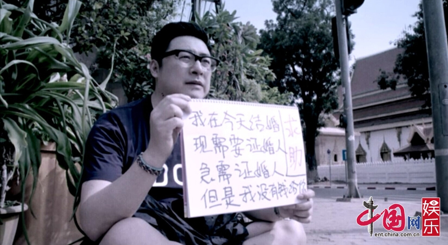 該片段中,王岳倫變身“落魄浪人”,獨(dú)自坐在老撾的馬路邊,手舉中文告示牌急求證婚人,然而車(chē)水馬龍的街頭并沒(méi)有人為他停下腳步,最終王岳倫被折磨得精神奔潰,只能對(duì)著天空大喊:“證婚人!你在哪!”