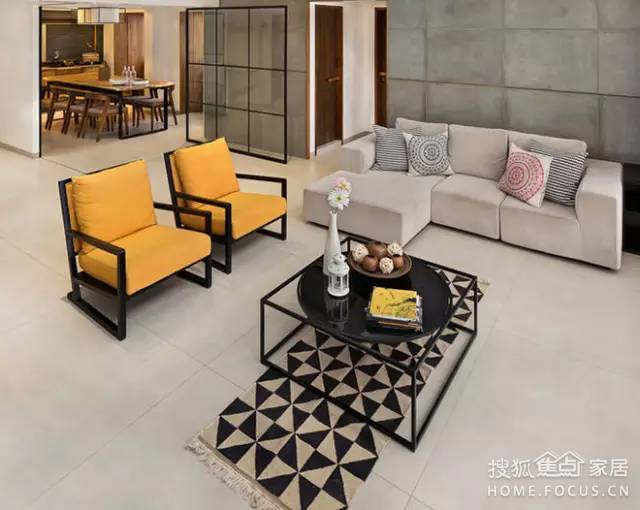沒(méi)有了電視的束縛,客廳擺放沙發(fā)可以更加靈活了。三人座、雙人座、單人座,以及不同樣式的沙發(fā)靈活搭配起來(lái)。