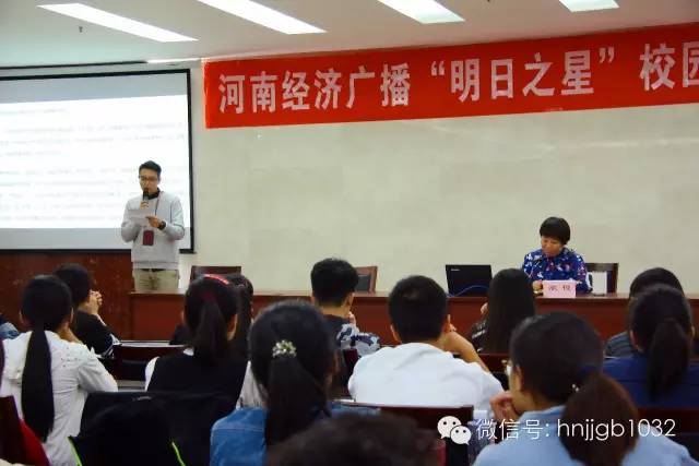 原來是河南經(jīng)濟廣播“明日之星”校園主持人大賽賽前培訓(xùn)現(xiàn)場呀!還沒到開講,房間里就已經(jīng)座無虛席。