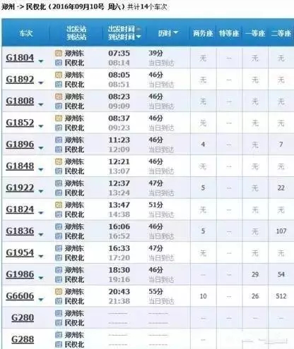 最快的一趟車G368/9,19點05分從上海虹橋始發(fā),23點02分到達鄭州東,耗時3小時57分,中途僅??磕暇┖托熘菡荆溆嗔熊囘\行時間都在4小時到5小時之間。
