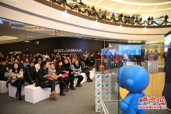 映象網(wǎng)訊 隨著巨型的圣誕樹被一層層點亮,悠揚的音樂響起,12月25日圣誕節(jié),F(xiàn)M104.1河南交通廣播形象公仔“嘟咔”,在鄭州的時尚地標(biāo)——華潤萬象城 中庭精彩亮相啦,各界嘉賓、媒體與鄭州市民共同見證了“嘟咔”的問世。