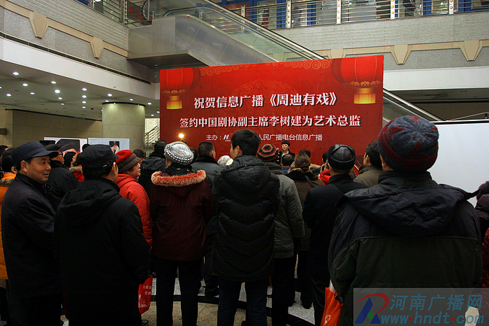 1月17日上午,河南人民廣播電臺《周迪工作室》掛牌儀式及中國戲劇家協(xié)會(huì)副主席李樹建先生受聘《周迪有戲》欄目藝術(shù)總監(jiān)簽約儀式在廣播大廈一樓大廳舉行。河南人民廣播電臺副臺長李海軍、河南人民廣播電臺信息廣播總監(jiān)李金鋒出席儀式。