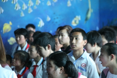 這批特殊孩子都是鄭州市二七區(qū)輔讀學校的在校學生,能夠在2012年六一兒童節(jié)來臨之際前往海洋館游玩,是大家多年以來的共同愿望。在三個多小時的時間里,信息廣播的編輯、記者、主持人領著智障、自閉癥兒童參觀了各個館舍。海豚館表演結束后,工作人員破例讓部分自閉癥孩子近距離與海豚接觸。由于海豚能發(fā)出多種波長的高頻超聲波(200至350千赫),對人的中樞神經(jīng)有激活作用,對自閉癥患兒有一定療效,孩子們臉上都露出燦爛的笑容,很多孩子都流下了激動的淚水。