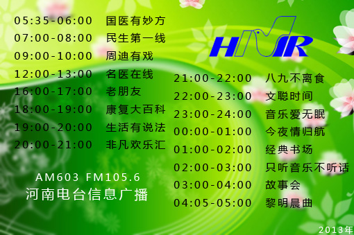 新舊交替,歲月輪回。為回報(bào)廣大聽(tīng)眾一直以來(lái)的支持與厚愛(ài),從2013年元月1日起,全新改版的AM603、FM105.6河南電臺(tái)信息廣播將精彩綻放。