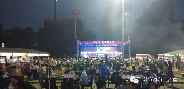 中原美食嘉年華的開幕標(biāo)志著集美食、運(yùn)動(dòng)、娛樂等元素的品牌夜市正式投入運(yùn)營??墒沁@里不僅僅是吃飯的地兒,你看那邊幾桌的白領(lǐng),白色襯衫都沒來得及脫下就已經(jīng)搶先坐下(請注意,他們是扭著頭看完舞臺表演的,沒起身,沒起身?。?,“下班后,跟同事來這兒說說話,放松下挺好的?!逼渲幸晃粠浶』镬t腆的說到。