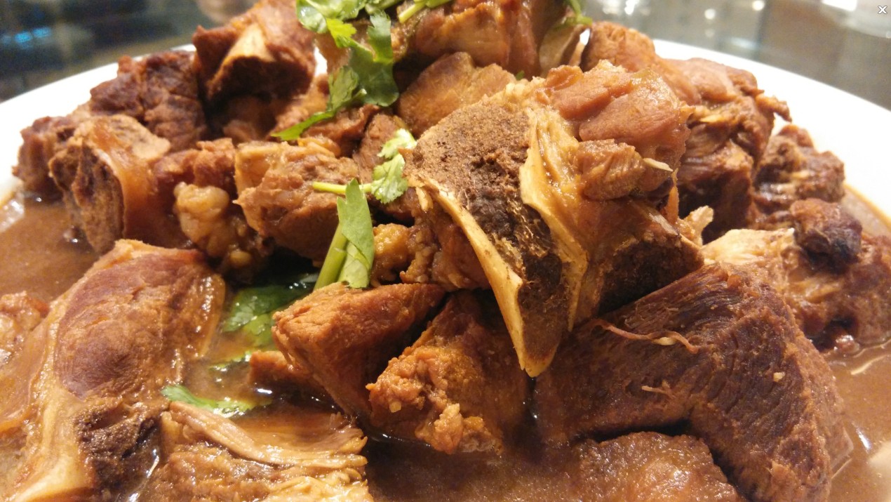 這道菜,我小時候是吃過的,現(xiàn)在吃起來口味依舊,心里忽而很暖。大肉與骨頭之間沒有太多的牽連,很利口,肉質(zhì)也煮的剛好,嚼起來很有質(zhì)感汁水淋漓,骨關(guān)節(jié)處的軟骨很脆,有一種別樣的滋味,看著咕嘟嘟冒著的熱氣,食欲也開始沸騰了。