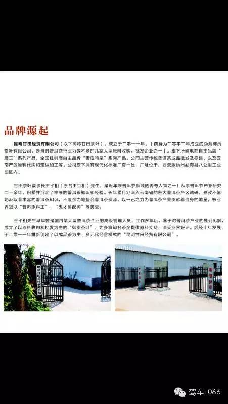 甘田茶葉成立于二零一一年(前身為二零零二年成立的勐海御貢茶葉有限公司,是當(dāng)時普洱茶行業(yè)為數(shù)不多的幾家大型原料收購,批發(fā)企業(yè)之一)。旗下所轄電商自主品牌“魔玉”系列產(chǎn)品,全國經(jīng)銷商自主品牌“舌底鳴泉”系列產(chǎn)品,公司主營普洱茶成品批發(fā)及零售,以及云南產(chǎn)區(qū)原料代購和定做加工等。