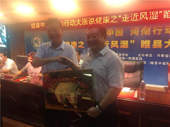 07月23日上午,由河南省衛(wèi)計(jì)委宣傳處指導(dǎo),河南省醫(yī)學(xué)科普學(xué)會(huì)、醫(yī)藥衛(wèi)生報(bào)主辦的“健康中國(guó) 河南行動(dòng) 大醫(yī)說(shuō)健康”開(kāi)啟第二站:“走進(jìn)風(fēng)濕”睢縣大型醫(yī)學(xué)科普宣講義診活動(dòng)。