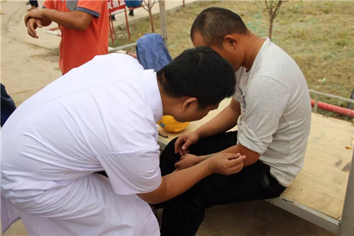 當(dāng)天前來求診的工友絡(luò)繹不絕,專家們耐心解答工友疑問,傳授醫(yī)療保健知識,指導(dǎo)群眾平常要注意身體保健,養(yǎng)成良好的飲食習(xí)慣和生活習(xí)慣,甚至還為頸椎病患者、腰椎病患者進(jìn)行即時針灸。義診從上午10點(diǎn)開始,一直開展到中午12點(diǎn)多,就診人群才慢慢散去,專家們早已餓得饑腸轆轆。專家們精湛的醫(yī)療技術(shù),耐心細(xì)致的服務(wù),受到建筑工人們的一致好評。