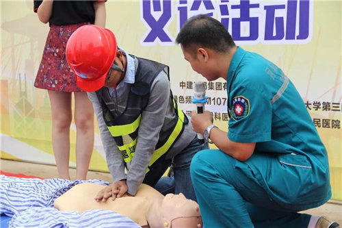醫(yī)生們一邊操作,一邊講解,工人們有不明白的,還可以現(xiàn)場提問。幾乎每一位認(rèn)真學(xué)習(xí)的建筑工人都想一試身手,醫(yī)生則在一旁一對一指導(dǎo)。
