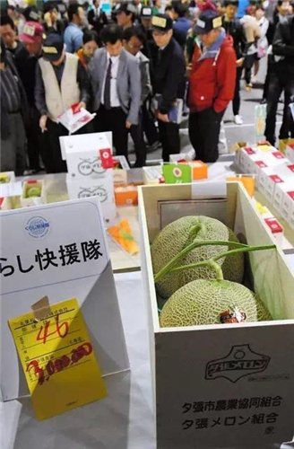 日本北海道夕張市特產(chǎn)“夕張蜜瓜”在今年5月26日的一家批發(fā)市場(chǎng)舉行了首次競(jìng)拍。兩個(gè)裝的夕張蜜瓜禮盒被以300萬(wàn)日元(約合人民幣17.9萬(wàn)元)的高價(jià)拍下。