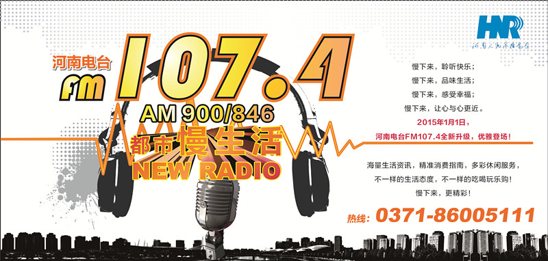 2015年1月1日,河南電臺FM107.4慢生活NewRadio全新升級,優(yōu)雅登場!海量生活資訊,精準消費指南,多彩休閑服務(wù),不一樣的生活態(tài)度,不一樣的吃喝玩樂購!慢下來,我的“心”常態(tài)!河南電臺1074慢生活NewRadio(FM107.4 AM900/846)。