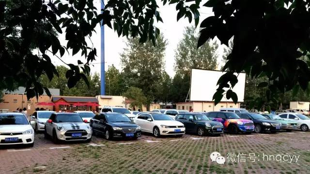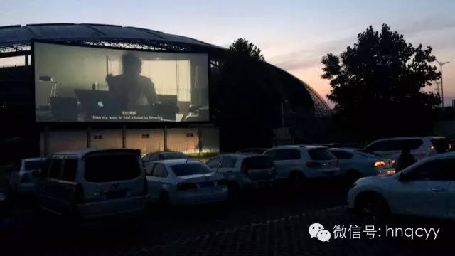 天漸漸暗了下來 電影準時開始 美女們相應(yīng)都被邀請到車上去看電影了