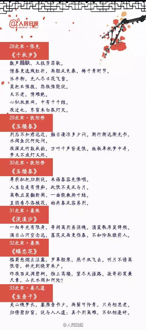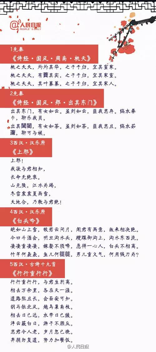 “愿得一心人,白頭不相離”,“從此無心愛良夜,任他明月下西樓”,“一川煙草,滿城風(fēng)絮,梅子黃時(shí)雨”……