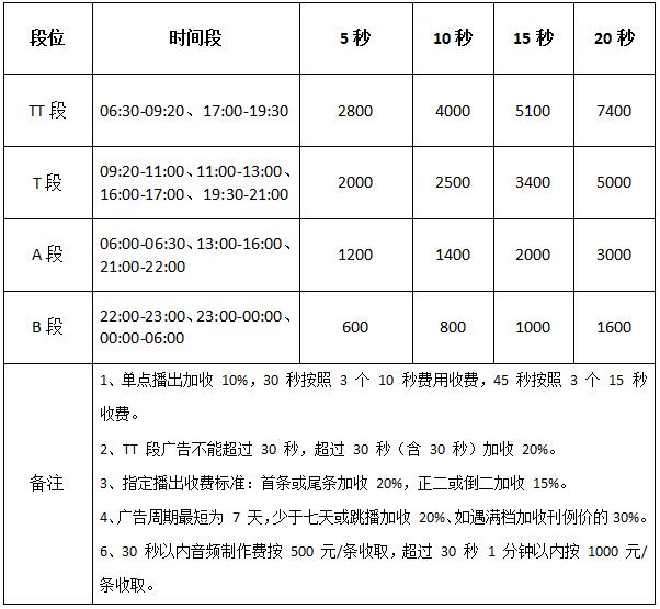 標準廣告刊例
