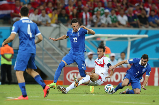 北京時(shí)間6月30日4時(shí),世界杯1/8決賽第4場(chǎng)在累西腓伯南布哥球場(chǎng)展開較量,哥斯達(dá)黎加120分鐘與希臘戰(zhàn)為1比1,點(diǎn)球決戰(zhàn)5比3勝出,首次打進(jìn)世界杯8強(qiáng),也成為2002年美國(guó)之后首進(jìn)8強(qiáng)的中北美洲球隊(duì),將與荷蘭爭(zhēng)奪半決賽席位。下半場(chǎng),哥斯達(dá)黎加隊(duì)長(zhǎng)魯伊斯打破僵局,但中衛(wèi)杜阿爾特此后兩黃下場(chǎng)。補(bǔ)時(shí)階段,帕帕斯塔索普洛斯扳平比分。點(diǎn)球戰(zhàn),哥斯達(dá)黎加門將納瓦斯撲出耶卡斯點(diǎn)球。 【詳情】
