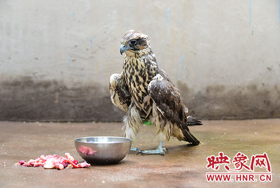 “這是一只獵隼,在我國屬于國家二級重點(diǎn)保護(hù)動物。蒙古國政府在2012年決定,將獵隼確定為蒙古國“國鳥”。蒙古國官方數(shù)據(jù)顯示,蒙古國境內(nèi)現(xiàn)存獵隼約6800只。由于它分布在蒙古國和我國的新疆、甘肅以及內(nèi)蒙古等地,而在我們河南沒有分布,因此十分罕見。從它頭頂色絨毛還沒退去就可以看出,它是今年剛孵化出來兩個(gè)多月的幼鳥。它的右翅膀第四、第五根飛羽有斷裂,右爪輕微擦傷,另外它患有非常嚴(yán)重的腸炎。這只獵隼,應(yīng)該是被人非法飼養(yǎng)后逃逸出來的,由于其野外捕食能力差,饑腸轆轆,體力不支,飛不起來,后被好心村民發(fā)現(xiàn),要不然是不可能逮住的。也多謝這位好心村民,要不然,它極易受到野狗野貓和其他大型猛禽襲擊或者落入不法分子手中牟取暴利?!倍鹃L說。