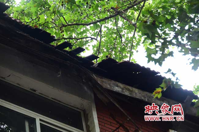 在三樓,河南省第一建筑工程集團有限責(zé)任公司物業(yè)管理分公司兩位工作人員稱,房頂不安全,他們早在兩個月前向上級部門打了報告。