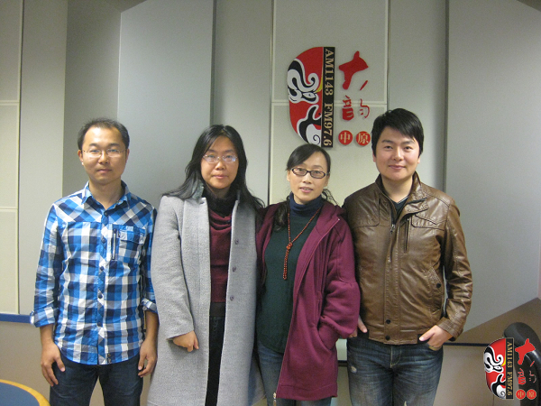 左起:河南電臺戲曲廣播《梨園留聲機(jī)》主持人王博,《梨園老照片》主持人曉雪,戲曲廣播副總監(jiān)張彤,品牌部主任月陽