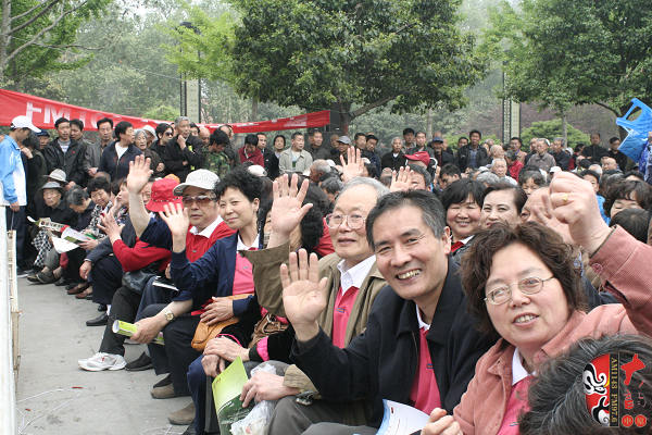 4月17日上午,在位于洛陽市中心、以體現(xiàn)周朝文化為主題的周王城廣場,“周公營建洛邑”雕塑旁,主辦方舉辦了一場別開生面的戲曲演唱會。來自鄭州、洛陽兩地的豫劇名家張月榮、曾廣蘭、趙曉梅、王藝紅,著名演員徐俊霞、陳大華、劉亞林、曲韻、劉海功、沈萍,梨園春明星擂主張艷紅、謝憲笙等為來自全省各地的戲曲廣播《戲迷俱樂部》百余位戲迷和現(xiàn)場的廣大觀眾奉獻(xiàn)了精彩的戲曲唱段。藝術(shù)家們演唱的《洛陽橋》、《秦雪梅》、《七品芝麻官》、《對花槍》、《拷紅》、《收姜維》、《朝陽溝》、《倒霉大叔的婚事》、《小白鞋說媒》、《紅菊》等不同劇種、不同流派、不同行當(dāng)?shù)哪捴巳丝诘某?,博得觀眾一陣又一陣的掌聲,河南戲曲廣播主持人媛媛、李鋮表演的雙簧妙趣橫生,引得觀眾樂不可支。