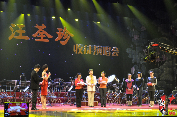 本次成為汪荃珍徒弟的分別是許昌市豫劇團的何艷芳和三團的韓亞冰,在拜師儀式上,著名戲劇評論家荊樺用“常大師的好學(xué)生、舞臺上的好演員、劇團里的好團長、朋友們的好朋友”來形容汪荃珍,汪荃珍自己也說,要銘記常香玉大師的教誨——“先做人,后演戲,戲比天大”,為戲曲事業(yè)培養(yǎng)更多優(yōu)秀人才。讓人印象深刻的是,汪荃珍沒有按照傳統(tǒng)的形式接受弟子的行禮,而是與弟子攜手共同向全場觀眾三鞠躬致意,贏得了觀眾們熱烈的掌聲,之后,汪荃珍與兩位弟子一起表演了《香魂女》當中的經(jīng)典選段,將整場演出的氣氛推向了高潮。
