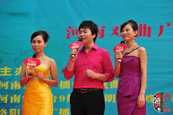 主持人左起:洛陽(yáng)文娛廣播主持人張東,河南電臺(tái)戲曲廣播主持人月陽(yáng),河南電視臺(tái)9頻道主持人王喆