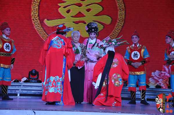 在當(dāng)天的演出中,除了關(guān)小鳳的精彩演唱之外,中國戲劇梅花獎(jiǎng)得主、豫劇名丑金不換,陳門再傳弟子、中國戲劇梅花獎(jiǎng)得主徐俊霞,關(guān)靈鳳親傳弟子霍梅英,戲曲名票龐笑天、吳素芹等也表演了各自的拿手好戲,為關(guān)小鳳助興演出。原西安獅吼劇團(tuán)的高材生、陳素真大師的學(xué)生陳素英今年78歲,在豫劇《三上轎》中她扮演婆婆,為關(guān)小鳳甘當(dāng)綠葉,其老到的表演也獲得了戲迷的熱情掌聲。鶴壁市豫劇團(tuán)團(tuán)長、豫劇名丑金不換剛剛擔(dān)任完河南省第七屆青年演員大賽的評委,就不辭勞苦地趕到演出現(xiàn)場。他介紹說,自己和關(guān)小鳳是封丘于店戲校的同學(xué),當(dāng)年他們那一屆學(xué)生當(dāng)中關(guān)小鳳是表現(xiàn)最優(yōu)秀的。關(guān)小鳳經(jīng)歷坎坷,但對藝術(shù)卻非常執(zhí)著,看到老同學(xué)的精彩表現(xiàn)他非常高興,希望關(guān)小鳳能把祥符調(diào)陳派藝術(shù)發(fā)揚(yáng)下去,祝福她在藝術(shù)道路上越走越好!
