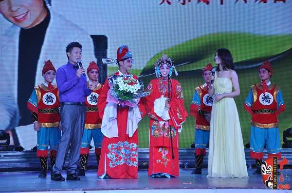 在6月16日舉辦的關(guān)小鳳個(gè)人戲曲專場中,關(guān)小鳳之女、24歲的張聰表演了豫劇《情斷狀元樓》“打神告廟”及《抬花轎》的“坐轎”兩折戲。畢業(yè)于河南省藝校的張聰現(xiàn)場表演稍顯稚嫩,但也獲得了觀眾的熱情鼓勵(lì)。張聰在接受記者采訪時(shí)說,自己戲校畢業(yè)之后到了福建省一閩劇團(tuán)工作,已經(jīng)有五、六年未接觸豫劇了。媽媽歷經(jīng)艱辛把自己帶大,特別不容易,這次為了支持媽媽的專場演出,她專程回河南、花十天時(shí)間趕排了兩折戲……在張聰表演完《抬花轎》的“坐轎”一折,一位身穿狀元紅袍、手捧鮮花、操南方口音的英俊小伙上臺向“周鳳蓮”求婚,經(jīng)張聰介紹,觀眾才豁然明白,英俊小伙乃她的老公,結(jié)婚時(shí),媽媽關(guān)小鳳因?yàn)槊τ诠ぷ魑茨軈⒓樱璐爽F(xiàn)場要補(bǔ)行跪拜大禮,以感謝母親的養(yǎng)育之恩。此情此景,讓現(xiàn)場不少觀眾為之動(dòng)容。
