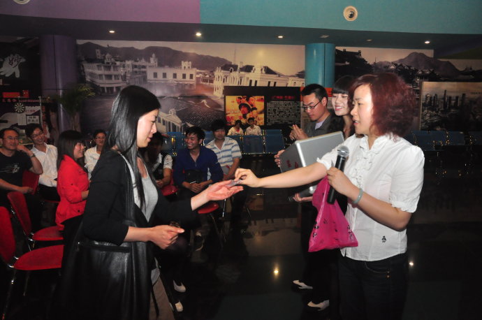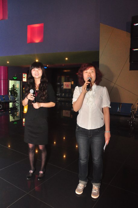 2010年5月8日上午10點(diǎn),河南電臺(tái)旅游廣播FM99.9《故事大秀場(chǎng)》聽(tīng)友觀影團(tuán),在鄭州百盛6樓的鄭州橫店影視電影城如期舉行。美女主持小佩、菲楊聯(lián)袂登場(chǎng),與聽(tīng)眾朋友精彩互動(dòng),現(xiàn)場(chǎng)有獎(jiǎng)問(wèn)答,鄭州橫店影視電影城也送出了各種精美禮品!互動(dòng)期間來(lái)自安陽(yáng)的聽(tīng)眾非常的幸運(yùn),獲得了本次活動(dòng)的大獎(jiǎng),一等獎(jiǎng):精美的純銀情侶對(duì)戒;還有2張價(jià)值45元的橫店影城貴賓券!大家?guī)е约旱亩Y物和歡聲笑語(yǔ),與小佩、菲楊一起在位于鄭州百盛廣場(chǎng)六樓的橫店影城電影城觀看了催淚大片《歲月神偷》,這部影片感動(dòng)了在場(chǎng)的每一位觀眾?;顒?dòng)最后,每位到場(chǎng)的幸運(yùn)聽(tīng)眾還獲得了鄭州橫店影視電影城贈(zèng)送的寶龍新店“20元現(xiàn)金券”!參與活動(dòng)的所有聽(tīng)眾都收獲豐厚,真的是滿載而歸呀!在此特別感謝鄭州橫店影視城對(duì)本次活動(dòng)的大力支持!故事大秀場(chǎng)我秀我飛揚(yáng)~~~