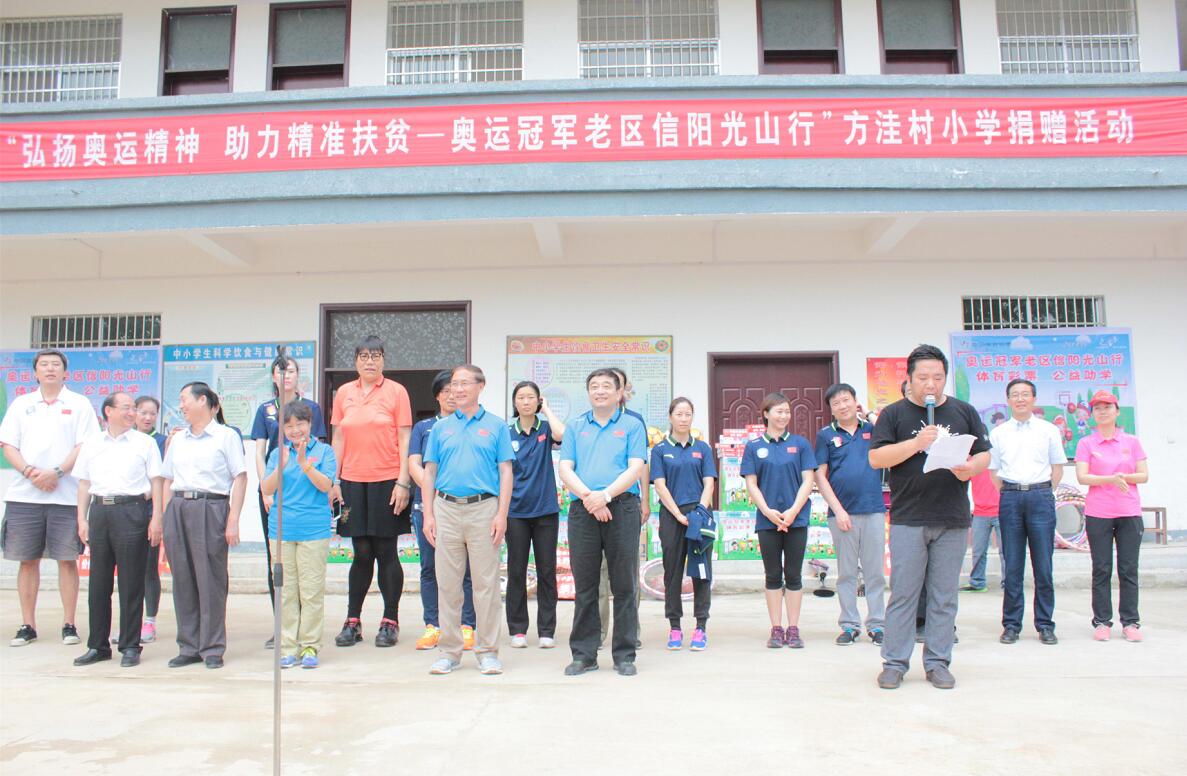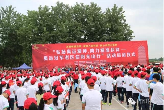 6月20日上午,由國家體育總局人力資源開發(fā)中心、河南省體育局和信陽市人民政府主辦,信陽市體育局、信陽市文明辦、信陽市扶貧辦和光山縣人民政府承辦的“弘揚(yáng)奧運(yùn)精神,助力精準(zhǔn)扶貧——奧運(yùn)冠軍老區(qū)信陽光山行”活動啟動儀式在光山文殊一中隆重舉行。