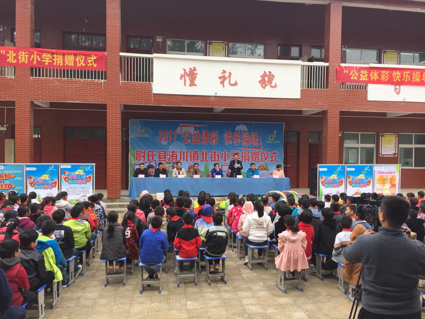 10月10日上午,河南省體育彩票管理中心在尉氏縣洧川鎮(zhèn)北街小學(xué)舉行2017“公益體彩 快樂操場(chǎng)”捐贈(zèng)活動(dòng)。開封市體育局副局長(zhǎng)張連生、河南省體育彩票管理中心開封分中心主任郝恒、河南省體育彩票管理中心開封分中心副主任宋介石、尉氏縣教體局副局長(zhǎng)黃瑋等出席了捐贈(zèng)儀式。