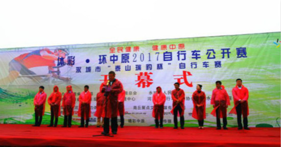 9月27日,以“全民健康,綠色中原”為宗旨的“體彩·環(huán)中原2017自行車公開賽--永城市泰山瑞豹杯自行車賽”在河南省永城市日月湖畔舉行。河南省自行車運(yùn)動管理中心書記李健、永城市人大常委會副主任駱本京、永城市人民政府副市長吳英杰、永城市教育體育局副局長趙海濤等相關(guān)部門負(fù)責(zé)人以及來自國內(nèi)外600多名運(yùn)動員和多家媒體參加了啟動儀式,啟動儀式由永城市政府辦公室副主任杜平主持。