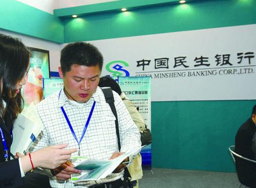 民生銀行(600016)上海分行工作人員正在向企業(yè)主介紹有關(guān)信息。 張衡年/攝影