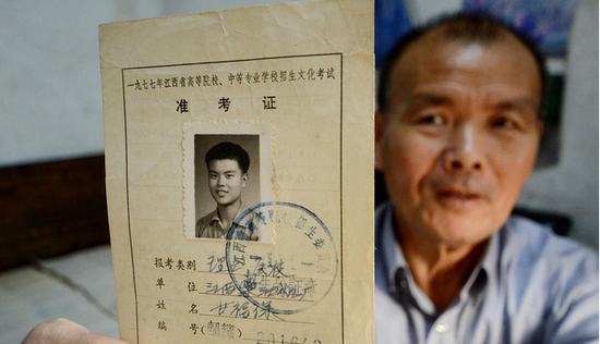 1978年夏天,迎來恢復(fù)高考后的第二次考試,考試結(jié)束后,甘福保跑到高招辦買了試卷回來自己做,從此后,他就一發(fā)不可收拾,每年高考都會買一份試卷回來,一直堅(jiān)持到2016年的高考。圖為甘福保展示當(dāng)年高考時的準(zhǔn)考證。