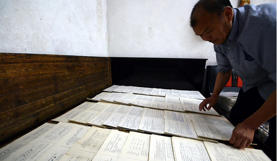 甘福保說,收藏高考試卷是一種情懷,他會一直堅(jiān)持下去。圖為甘福保收藏的高考試卷。