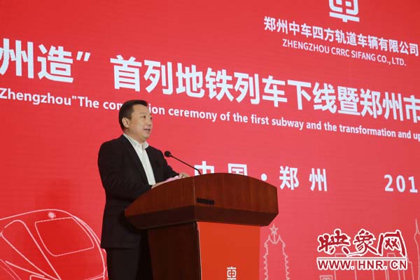 期間,河南省政府副秘書(shū)長(zhǎng)王夢(mèng)飛宣讀省委省政府賀信,中車青島四方機(jī)車車輛股份有限公司總經(jīng)理馬云雙代表投資方介紹企業(yè)產(chǎn)品產(chǎn)業(yè)情況,“鄭州造”首列地鐵列車用戶方鄭州市軌道交通有限公司黨委書(shū)記、董事長(zhǎng)、總經(jīng)理張洲致辭;鄭州市政府市長(zhǎng)程志明分別做重要講話。