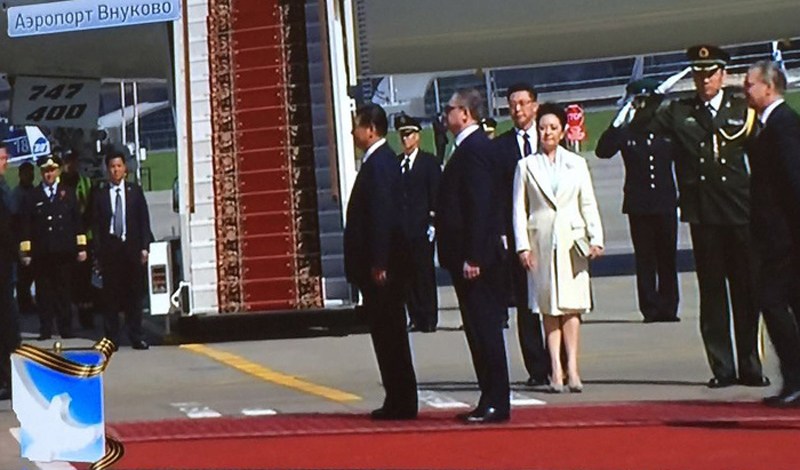 2015年5月8日,習(xí)近平和彭麗媛乘專機抵達(dá)俄羅斯首都莫斯科。