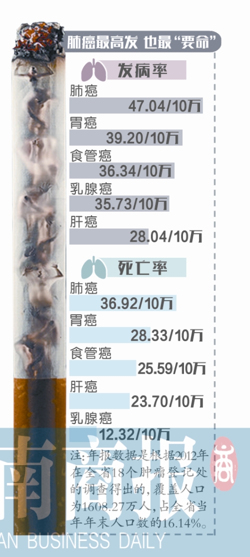 《2015年河南省腫瘤登記年報(bào)》出爐 肺癌發(fā)病死亡率居首 制圖/鄭萌