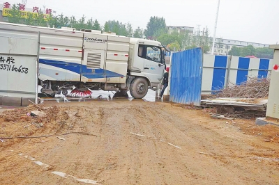4月26日早上,負(fù)責(zé)清掃西三環(huán)與化工路交叉口附近路面的環(huán)衛(wèi)工吳師傅和石師傅,前腳剛把路上的泥漿清掉,不料很快又出現(xiàn)泥漿。順著泥印,環(huán)衛(wèi)工們很快找到路邊一家工地。此時(shí),一輛輛輪胎上粘滿泥巴的工程車,正從工地里出來(lái)駛向馬路。環(huán)衛(wèi)工們一怒之下,將清掃車擋在工地門(mén)口。