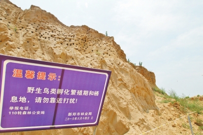 為保護(hù)鳥(niǎo)兒安全度過(guò)繁育期,河南省森林公安局、河南省野生鳥(niǎo)類(lèi)觀察學(xué)會(huì)在土堆前立了一塊警示牌,上書(shū)“鳥(niǎo)類(lèi)棲息地,禁止靠近”,呼吁社會(huì)善待候鳥(niǎo)。而新鄭市林業(yè)局林政科有關(guān)人員在接受記者采訪時(shí)亦稱(chēng):“我們只要一接到群眾舉報(bào),立即會(huì)同公安機(jī)關(guān),盡快把這些燕子集中育雛地保護(hù)起來(lái),除告知施工單位停工外,還在一定區(qū)域內(nèi)拉起警戒線,禁止無(wú)關(guān)人員驚擾燕子孵卵育雛,今年新鄭市總共有三處燕子育雛地被集中保護(hù),新鄭市保護(hù)崖沙燕的善舉曾得到過(guò)中央級(jí)媒體的表?yè)P(yáng),接下來(lái)我們會(huì)再接再厲,爭(zhēng)取做得更好?!?/p>