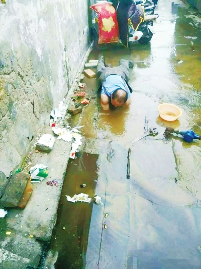 水務(wù)維修工葉京喜光著膀子趴在污水里搶修